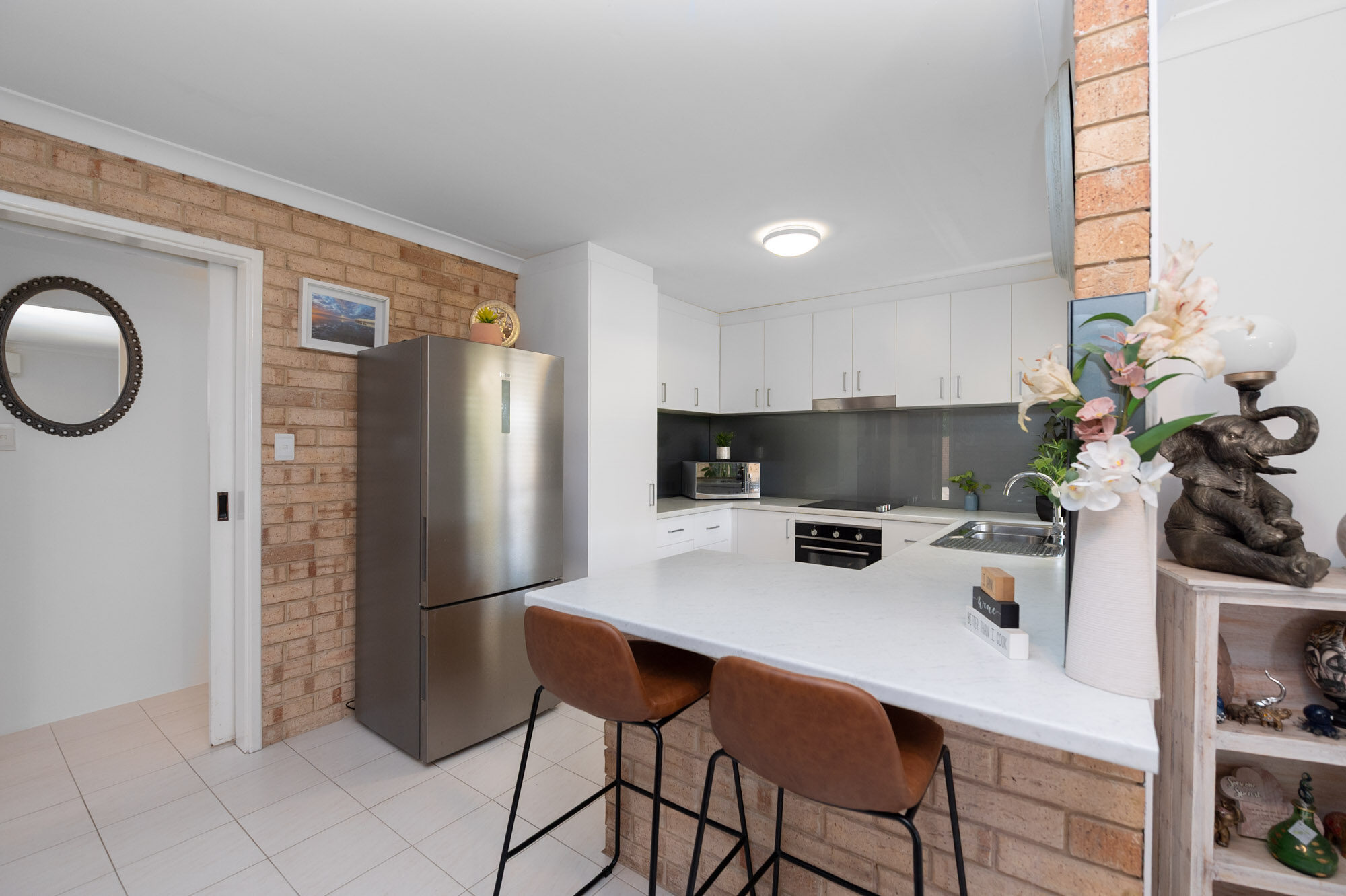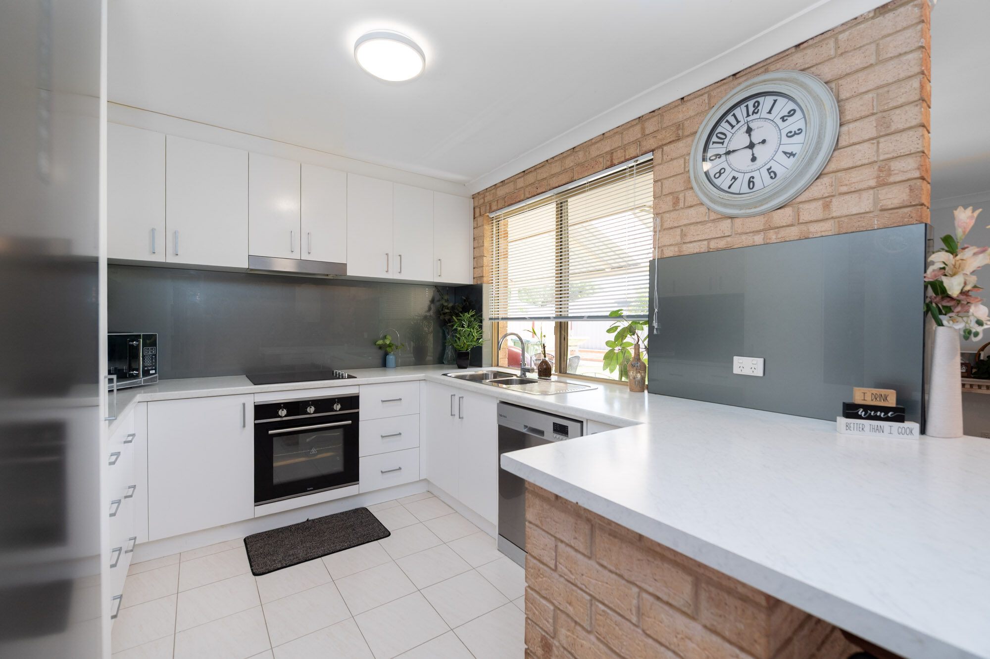 The contemporary kitchen is thoughtfully designed with stainless-steel appliances, a generous breakfast bar, tiled splashback, and excellent storage-perfect for everyday cooking and entertaining.