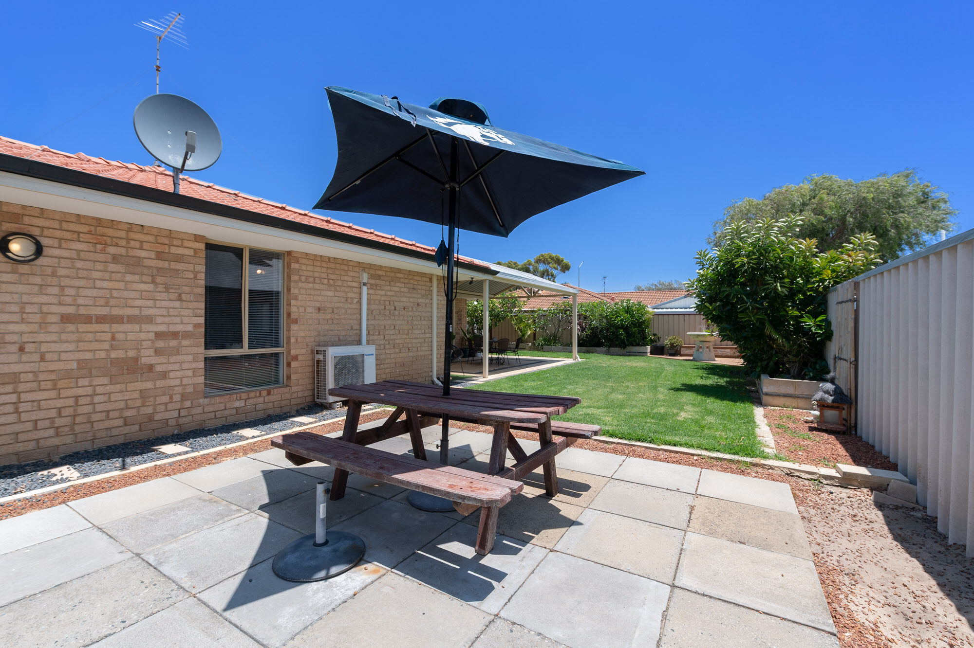 Accommodation includes three comfortable bedrooms, each with built-in robes and plush carpets. The central bathroom is stylishly appointed with modern tiling, a large shower and great storage, while the separate laundry adds extra convenience.