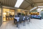The outdoor area is easy to maintain and suitable for entertaining or relaxing.